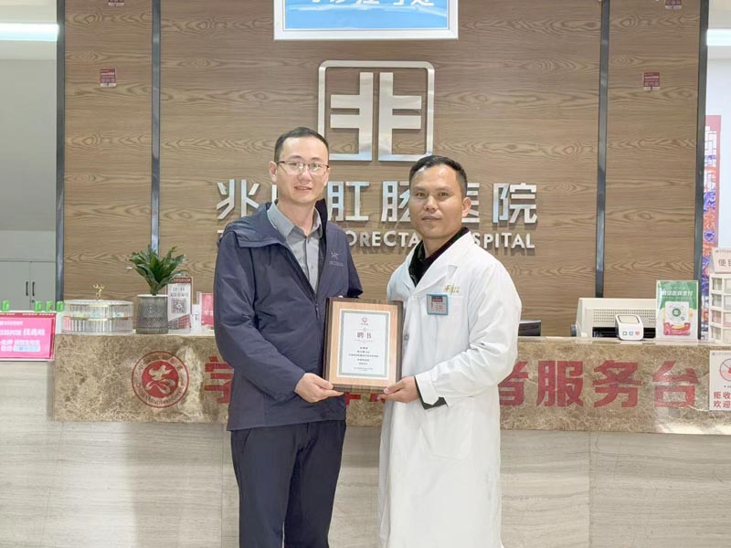 近日,马应龙肛肠诊疗技术研究院有关负责人亲临阜阳兆岐肛肠医院,将一个金灿灿印有“兹聘请