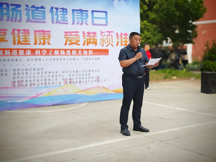 活动伊始,阜阳兆岐肛肠医院院长彭传刚致欢迎辞。他强调,肠道是人体重要的消化和免疫器官,呼吁公众重视肠道健康筛查,做到“早预防、早发现、早治疗”。颍州区卫健委党组成员、副主任邵炳凯在讲话中指出,肠道疾病已成为威胁居民健康的常见问题,需通过科学宣教提升全民健康素养。阜阳市爱心公益志愿者协会会长李文标则从公益角度倡议社会各界关注弱势群体健康需求,携手构建健康支持网络。协会副会长韩明忠现场宣读《肠道健康倡议书》,号召市民养成均衡饮食、规律作息、定期体检的良好习惯。